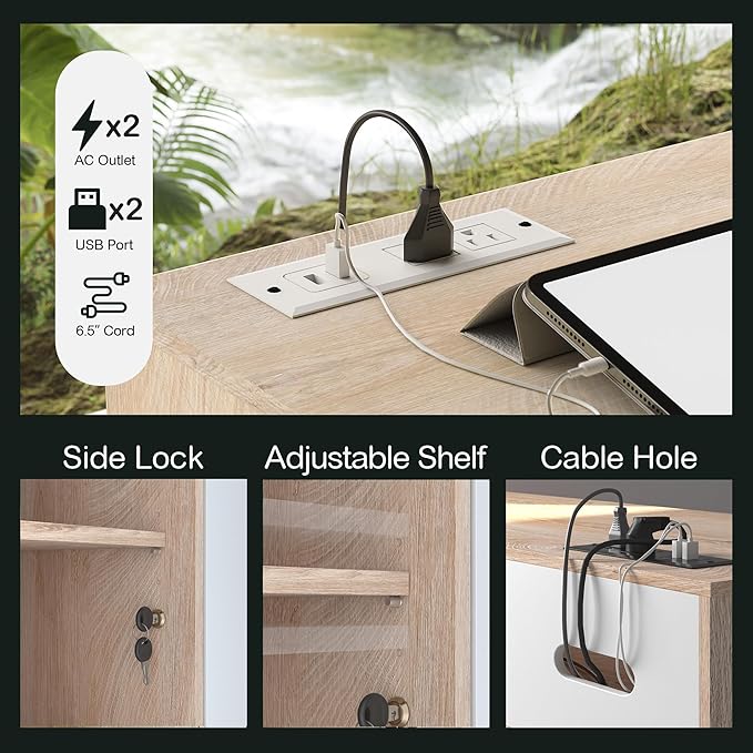 - Convenient Charging Options: Our file cabinet for home office featuring a built-in power outlet for added convenience.With two AC sockets and two USB ports, you can easily charge your laptop, tablet, or phone without cluttering your workspace with cords