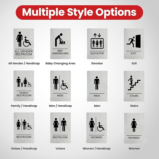 - ADA Compliant with Tactile Features – Features raised, uppercase sans-serif text with Grade 2 Braille, meeting ADA standards for accessible navigation.