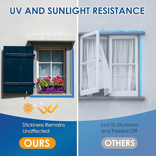 - Upgraded Tape: This upgraded blue tape features UV resistance and high-temperature tolerance, maintaining good adhesion even under prolonged sunlight exposure, making it suitable for outdoor use. Its versatility makes it suitable for various applications, including painting projects, light bundling, caulking, packaging, and marking