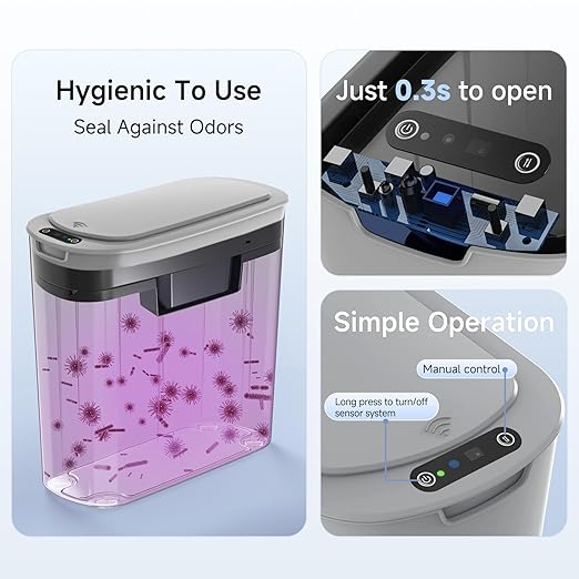 - Special Feature : Motion Sensor, Odor Seal, Removable Lid