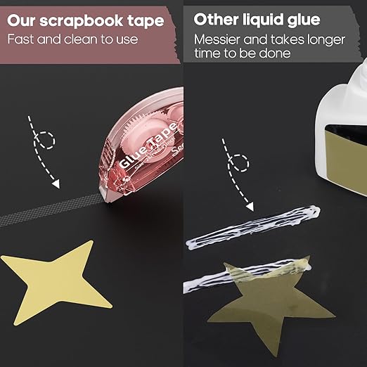 - Tip&Note: You can clean and re-tape the scrapbooking tape if you make a mistake in a short time. Low temperature may affect the stickiness of the tape, try to use in warm indoors