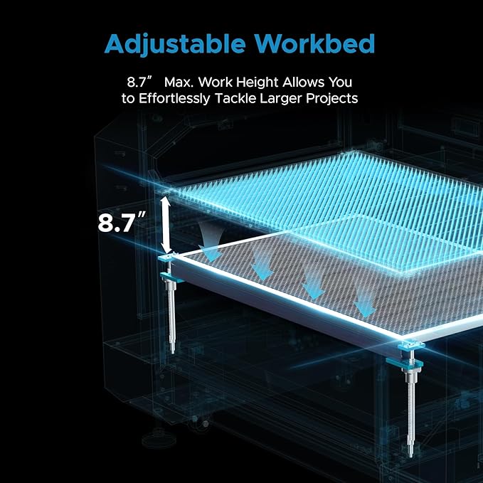 - Built for Bigger Jobs: Featuring a spacious 28"x20" work area and an ultra-fast engraving speed of 1,000 mm/s, this laser cutter allows you to complete bulkier projects quickly and efficiently, from intricate patterns to large-scale cuts