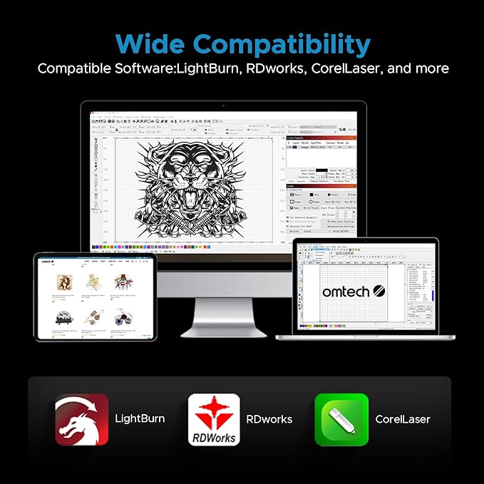 - Work with Your Favorite Software: This laser engraving machine seamlessly integrates with RDWorks, CorelLaser, and LightBurn, allowing you to design and engrave with ease using the software you prefer