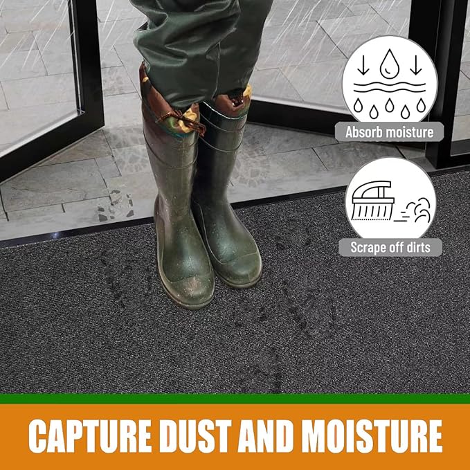- Deep Grooves Capture Dirt and Moisture: Say goodbye to dirt and moisture tracked into your home. Our front door mat effectively captures dirt, mud and moisture from shoes, keeping your floors clean and protecting them from potential damage.