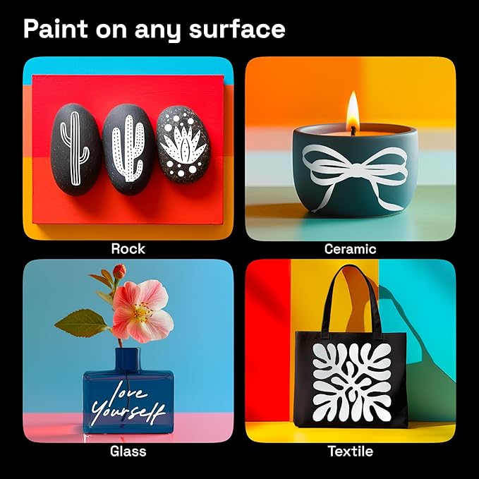 - Recommended Uses For Product : Art projects, rock painting, wood crafts, glass decoration, paper-based art