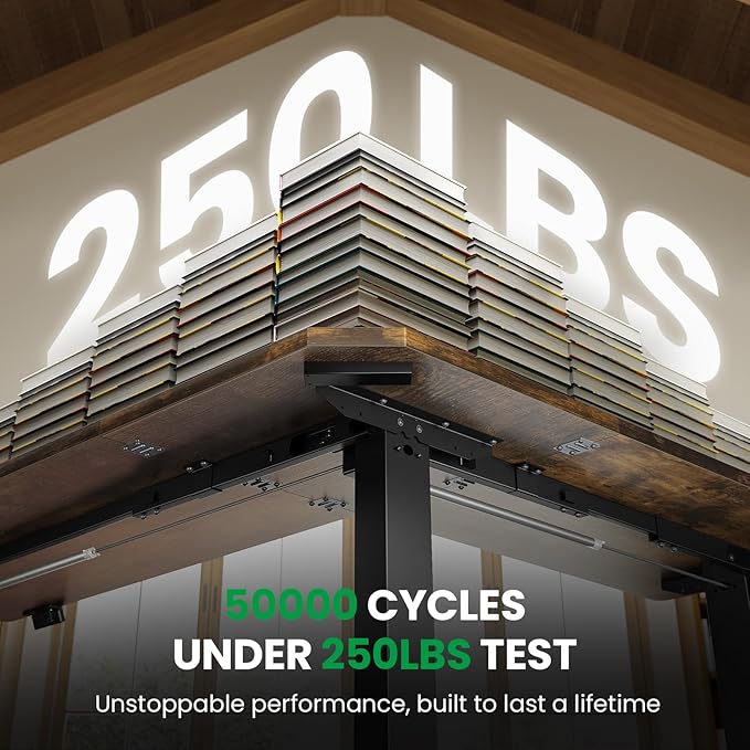 - 【Solid and Durable】The L-shaped electric standing desk features a durable and wear-resistant tabletop paired with three equal-length legs . During a 250LBs load-bearing test, the motor can smoothly perform 50,000 lifting and lowering cycles. SIAGO L-shaped standing desk — Redefining the lifecycle of office furniture through industrial-grade durability