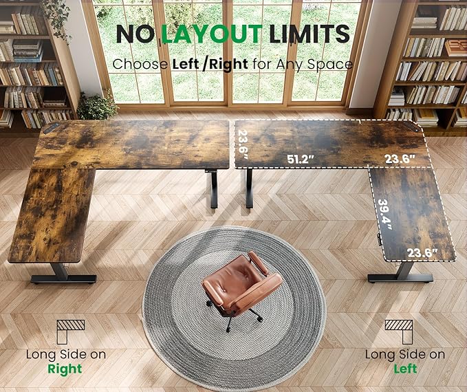 - 【No Layout Limits】Effortlessly adapt to any room layout with your unique reversible installation feature. Choose between left/right long-side configurations to maximize space utilization, ensuring seamless integration into any home office setup. Tailored to your unique needs, SIAGO L-shaped desk offers ultimate flexibility while delivering a premium workspace solution.