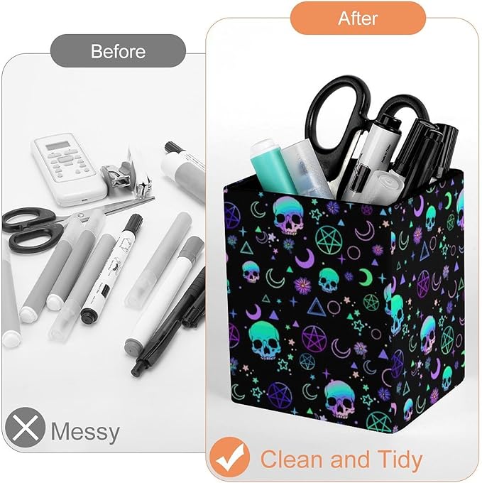 Square Pen Holder & Pencil Organizer for Desk - Office Storage Organizer, Markers/Makeup Brushes/Scissors Holder, Compact Desk Decor Accessories for Home Classroom School(Skull)