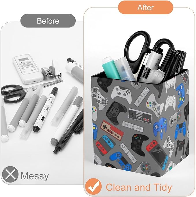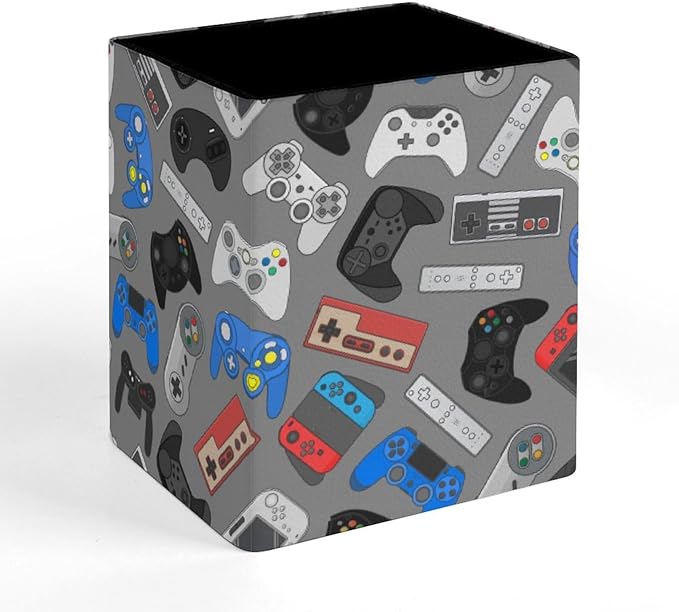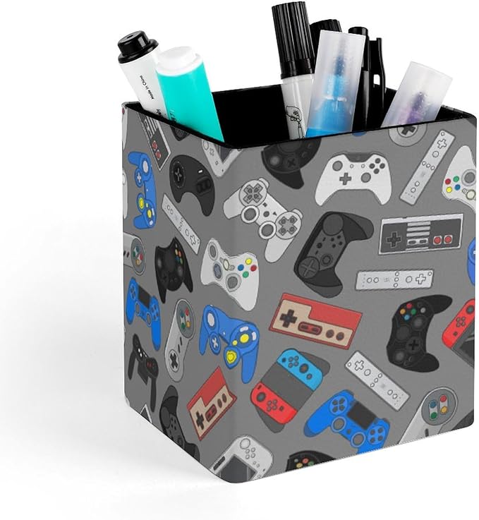 Square Pen Holder & Pencil Organizer for Desk - Office Storage Organizer, Markers/Makeup Brushes/Scissors Holder, Compact Desk Decor Accessories for Home Classroom School(Video Games)