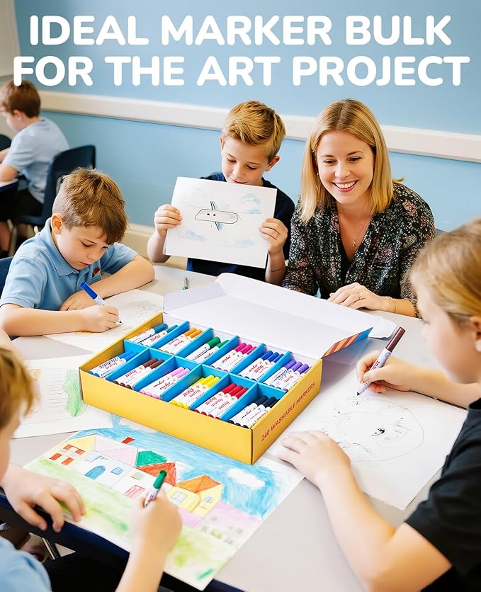 - 【240-PIECE CLASSROOM PACK】 20 markers per vibrant shade (Red, Orange, Yellow, Green, Teal, Sky Blue, Navy Blue, Purple, Pink, Rose Red, Brown, Black). Ideal for classroom group projects and art stations.