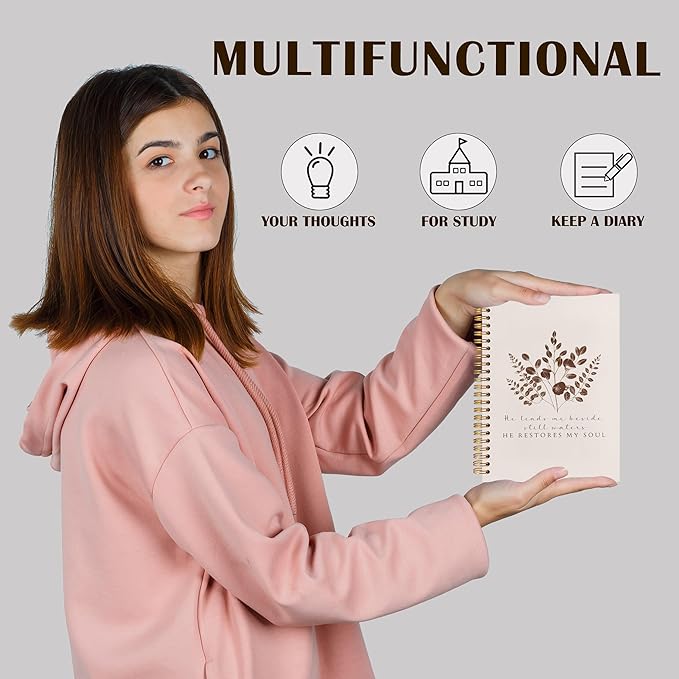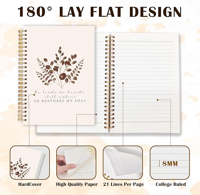 Qabliqo Vintage Plant Christian Spiral Notebooks, He Restores My Soul Bible Journals for Writing, Religious Payer Journal for Women Men, Scripture Notebook for Note Taking, 5.5x8.3 Inch