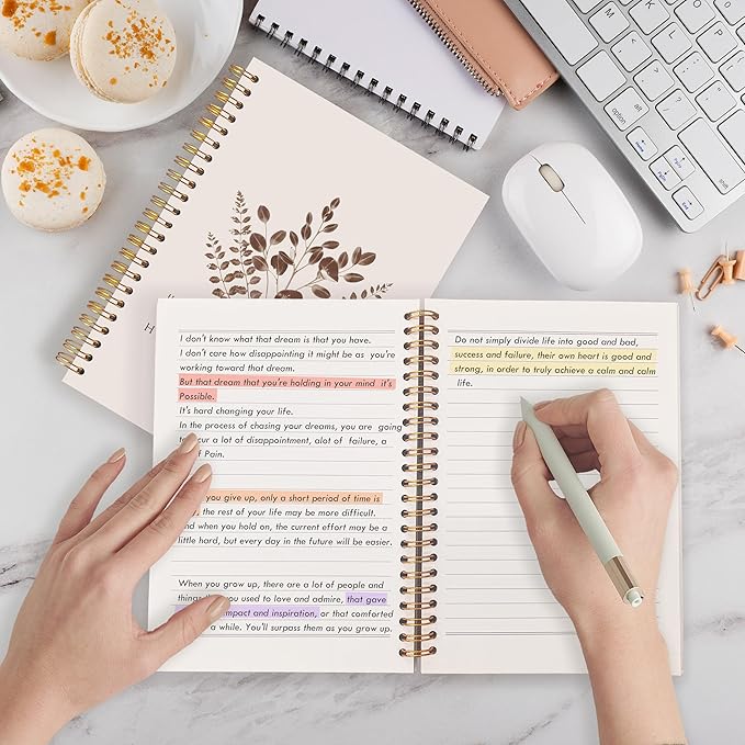 - Size and Construction: Measures approximately 5.5 x 8.3 inches. Comes with a hardcover and spiral binding, making it easy to open flat and write comfortably.