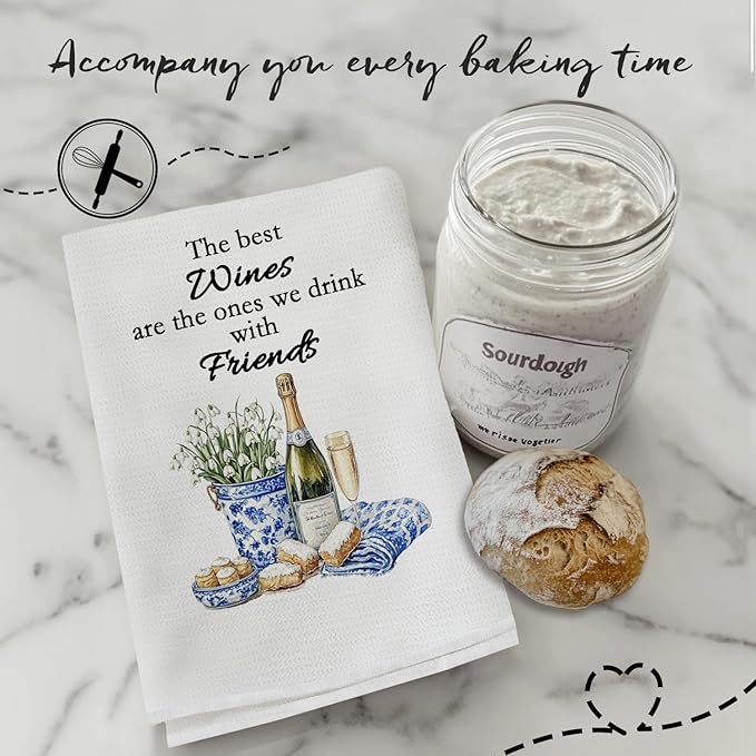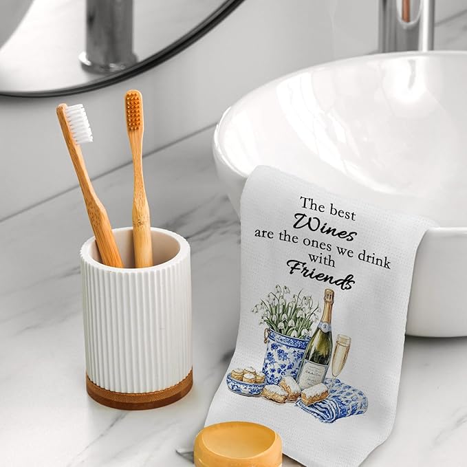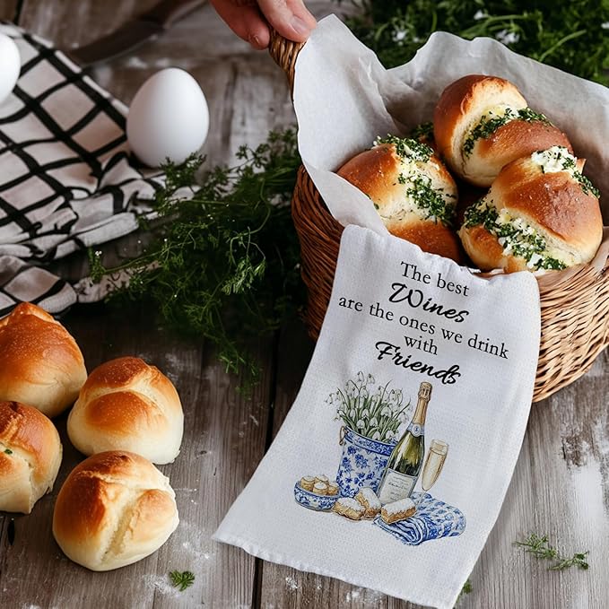 Chinoiserie Wine Kitchen Towels, Wine Lover Gifts Hand Towels for Kitchen Decor, grandmillennial Champagne Bottle Glass Decorative Dish Tea Towels for Home Bar, 16x24 Inch
