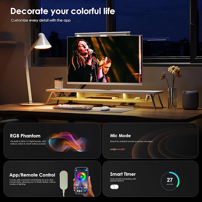 - 【Smart LED Lighting】Personalize your workspace with 16 million colors via the Lotus Lantern app. Command lighting with your voice, sync to music rhythms, or instantly switch between presets - including focus-enhancing cool white, relaxing warm amber, and dynamic RGB modes - to match any activity.
