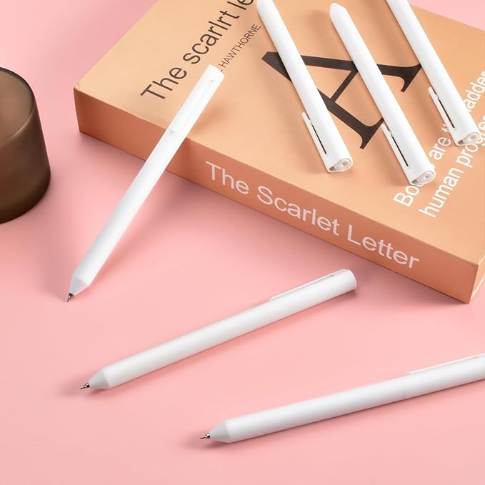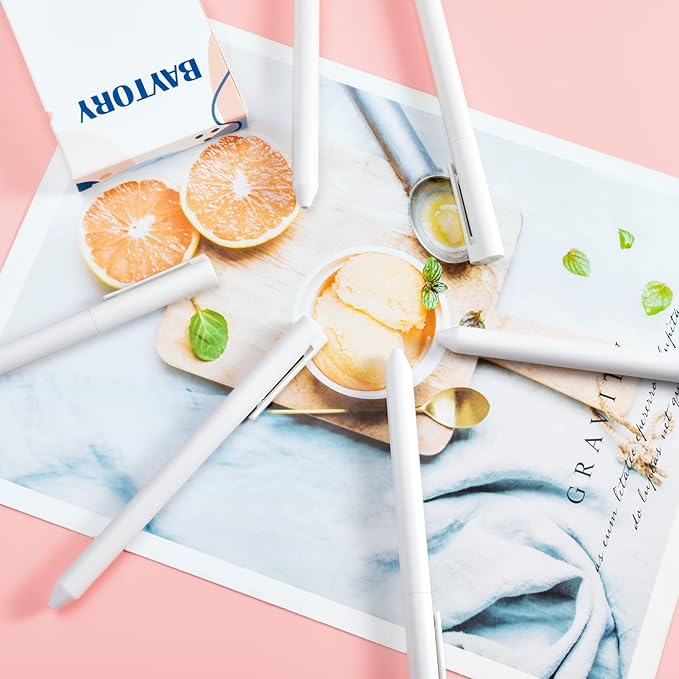 BAYTORY 8Pcs Rotatable Gel Pens, 0.5mm Fine Point Black Ink Pen, Smooth Writing Quick Dry Gel Ink Pens for Journaling Note Taking Sketching (White)