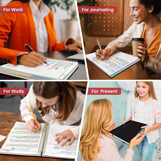 - Spacious Large Subject Notebook: This lined large spiral notebook offers 280 pages in a generous A4 notebook size (8.5" x 11"), providing ample room for note taking, journaling, meeting notes, or work organization. Whether used as a multi subject notebook for school or personal planning, the expanded format makes it easy to capture and organize detailed thoughts, plans, and ideas.