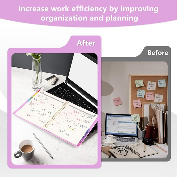 - MONTHLY PLANNER: Monthly page includes previous/next month views, holiday reminders, day countdown, lined daily blocks, notes section, ample writing space for efficient monthly tracking. Colorful monthly tabs enable easy flipping, enhancing organization