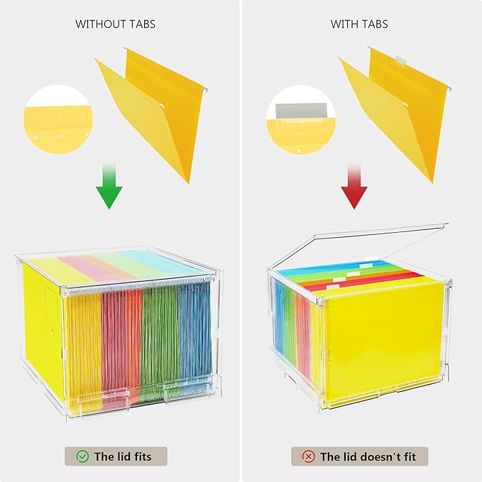 - Stackable storage:This hanging file box is made of transparent material. After assembly, it is firm and stable, and can be stacked for storage. Save space