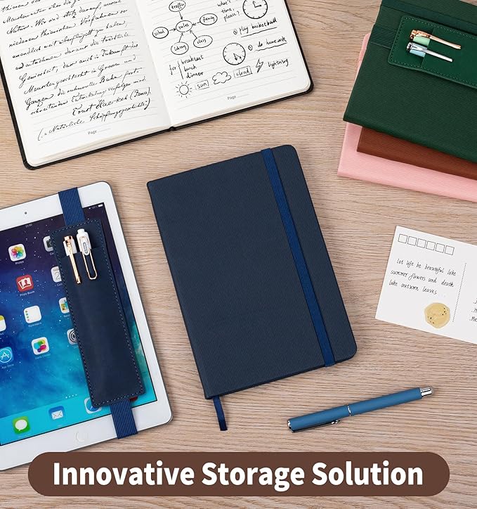 - 【Extra Wide Pen Holder】The removable pen holder is made of hard-wearing leather with tiny exquisite stitching, sturdy and durable. The elastic band is flexible and easy to adjust. Suitable for a variety of scenarios, it can be easily used with a hardcover journal or tablet.