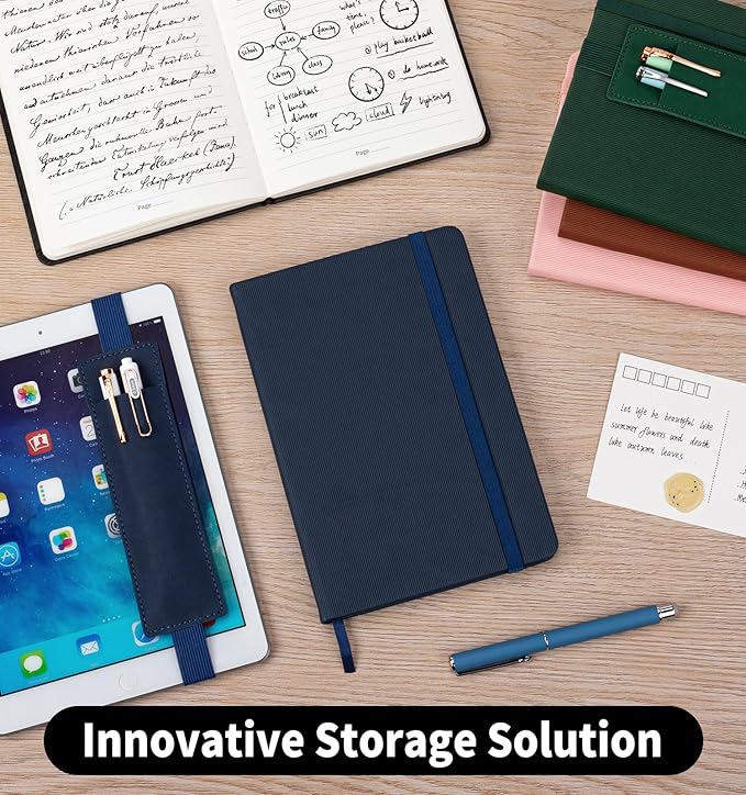 - 【Extra Wide Pen Holder】The removable pen holder is made of hard-wearing leather with tiny exquisite stitching, sturdy and durable. The elastic band is flexible and easy to adjust. Suitable for a variety of scenarios, it can be easily used with a hardcover journal or tablet.