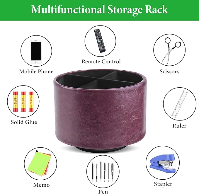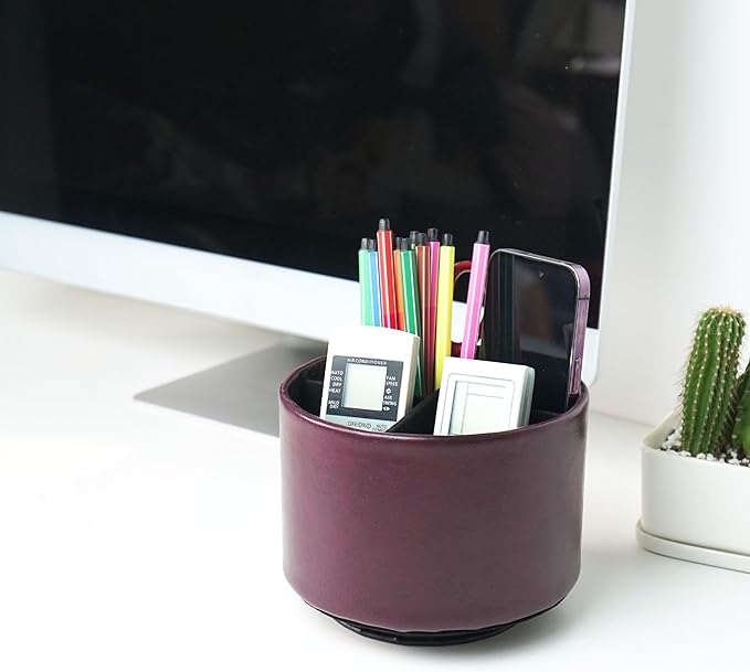 - ✎360° Revolving Design: You can freely rotate the pen holder steadily left and right,unique spinning base design allows easy access to items from any directions.The non-slip pads on the bottom keep it stay in place when rotating.