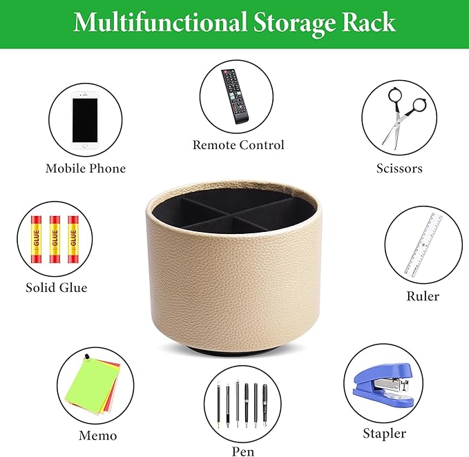 - ✎360° Revolving Design: You can freely rotate the pen holder steadily left and right,unique spinning base design allows easy access to items from any directions.The non-slip pads on the bottom keep it stay in place when rotating.