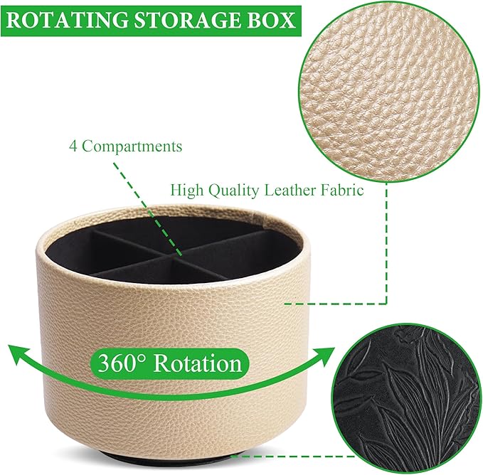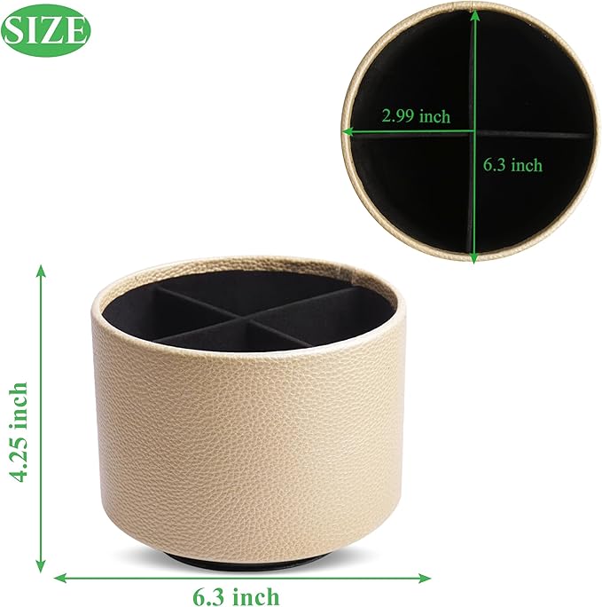 Hennaja Round Leather Art Supply Organizer,Remote Control Holder,360 Degree Spinning,Multi-Functional Pencil Holder,4 Compartments Desktop Stationary Organizer(1-Lichee Gold)