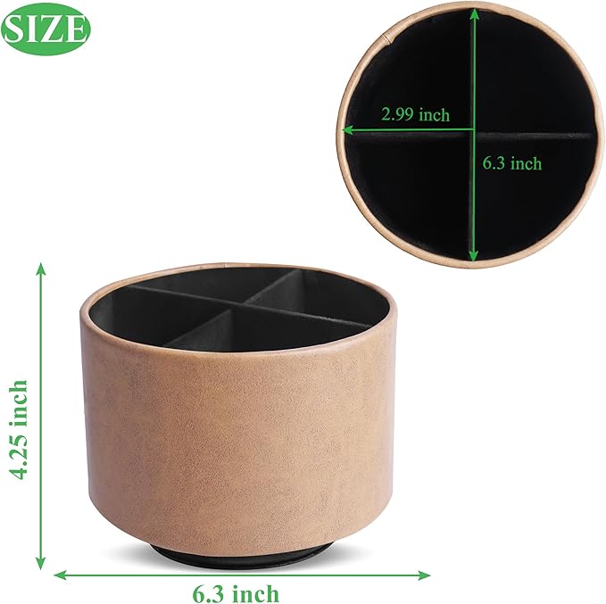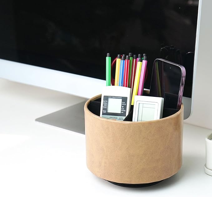 - ✎360° Revolving Design: You can freely rotate the pen holder steadily left and right,unique spinning base design allows easy access to items from any directions.The non-slip pads on the bottom keep it stay in place when rotating.
