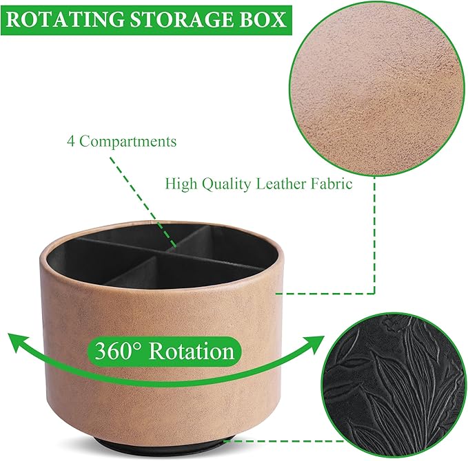 Hennaja Round Leather Art Supply Organizer,Remote Control Holder,360 Degree Spinning,Multi-Functional Pencil Holder,4 Compartments Desktop Stationary Organizer(1-Oil Yellow)