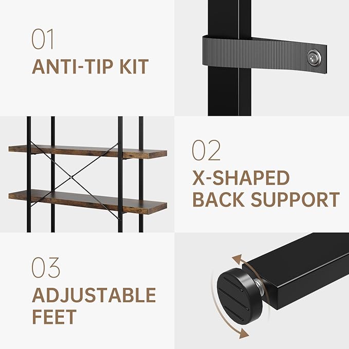 - Industrial Style & Versatile Design: Crafted with sturdy metal frame & rustic brown wood shelves, this 6-tier bookshelf blends industrial charm with modern functionality. Perfect for living rooms, bedrooms, offices, and kitchens—complements farmhouse, rustic, or contemporary decor