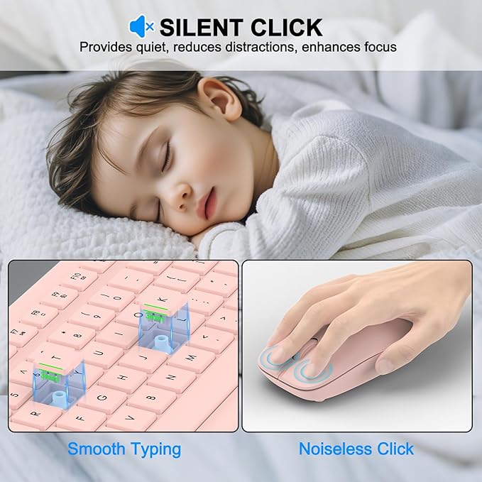 - 【Less Noise, More Quiet Keys】: Soft membrane keys provide a quiet and comfortable typing experience, So you can type with confidence on a wireless keyboard crafted for comfort, precision and fluidity. The wireless mouse adopts silent micro-motion technology, which is almost completely silent when clicked. No more concerns about disturbing others.