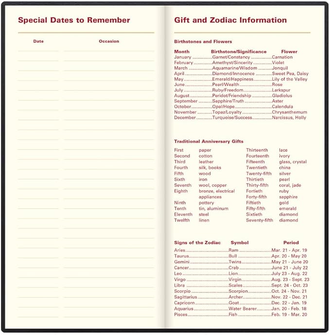 - Format : Address Book, Day to Day Calendar, Engagement Calendar, Notebook, Organizer