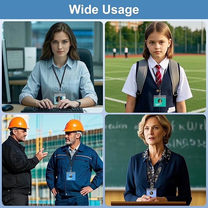 - Each neck lanyard with firm steel swivel hook is lightweight and easy to connect, can 360 degree rotating, secure your employees or guests with these THICK nametags and lanyards that fit most ID and credit cards