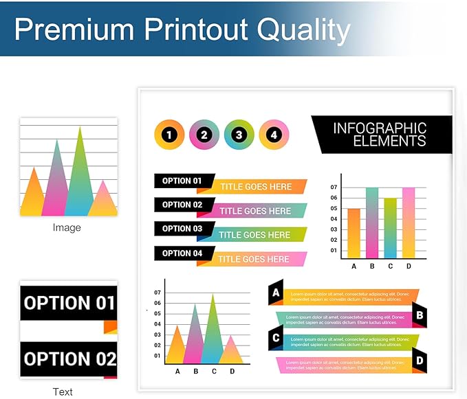 - Premium Printing Quality: vivid & vibrant color printout and sharp text printing, resisting fading, smudging and blurring