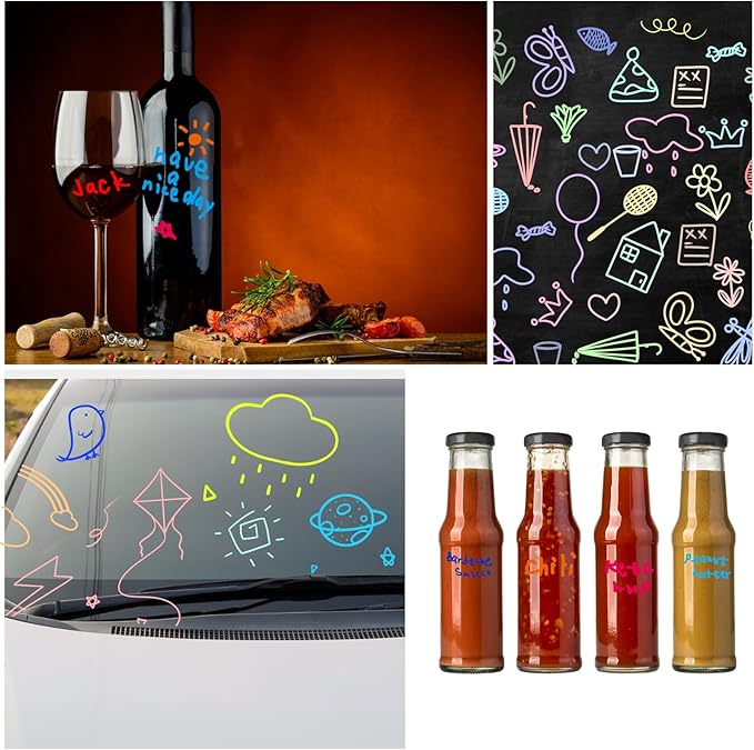 - Versatile & Practical Chalkboard Markers for Educational Use — Great for lesson plan boards, interactive activity charts, cafeteria menus, classroom signs, holiday decorations on windows, and creative student projects on ceramics, glass, and LED boards.