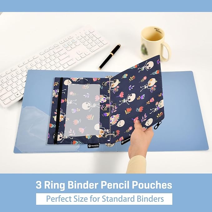 - 3 Ring Pencil Pouch: Zipper pouch with rivet enforced holes perfectly compatible with all standard 3 ring binders, widely used in college, school, office, home