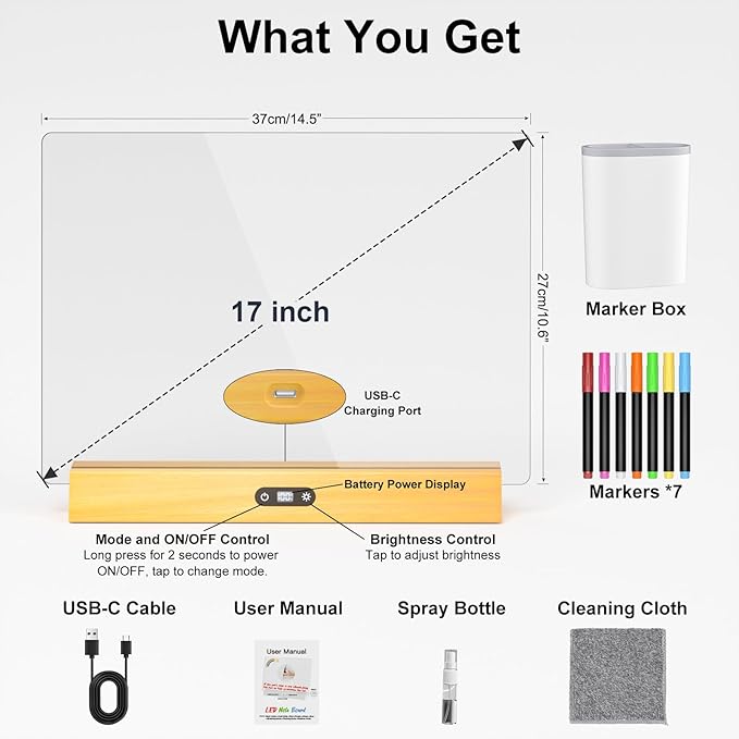 - [Scratch-Resistant Dry Erase Surface]-: Engineered with enhanced acrylic that's 30% harder than standard acrylic boards, this surface is more scratch-resistant and provides a smoother writing experience for effortless drawing and erasing. Includes 7 vibrant markers for bold, creative expressions