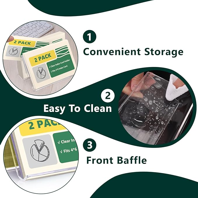 - Easy to clean, long-lasting and durable:The acrylic index card display rack has a smooth surface and is easy to clean. Just wipe it with a damp cloth to restore the brightness. The sturdy structural design ensures that the display stand will not deform after long-term use, making it a reliable choice for your desktop organization.