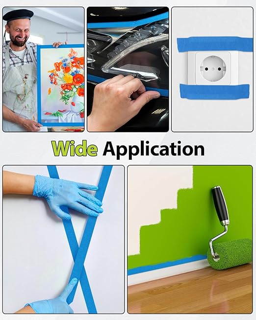 - Residue-Free Clean Removal – Enjoy sharp paint lines without sticky mess. Our blue tape painters tape is engineered to remove cleanly up to 14 days after application without damaging surfaces.