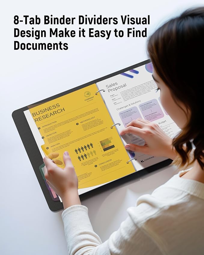 - Multiple Color Options: Our binder dividers with tabs come in 8 different colors to help with marking and sorting. Tabs for 3 ring binder help you easily organize complex documents and allow you to distinguish between different sections.