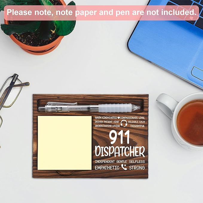 911 Dispatcher Appreciation Gifts, Thank You Gift for 911 Dispatcher, Dispatch Office Coworkers Staff Appreciation Gifts, Sticky Note Holder Wooden Notepad & Pen Holder 6.5" x 4.7" - FTA292