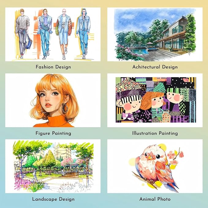 - Easy to Organize & Carry:The color-coded caps—matching each marker’s actual ink color—allow for instant identification of your perfect shade, cutting down search time while simplifying organization. Our marker set comes with a durable, lightweight carrying bag featuring a base tray at the bottom to hold all 60 markers organized. Easy to carry to art classes, travels, or weekend getaways.