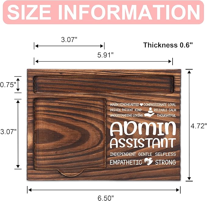 - IDEAL GIFT FOR ADMINISTRATIVE ASSISTANTS - This Wooden Admin Assistant Desk Organizer makes an excellent motivational gift for administrative assistants, with uplifting words like "empathetic", "strong", and "independent" engraved on it.