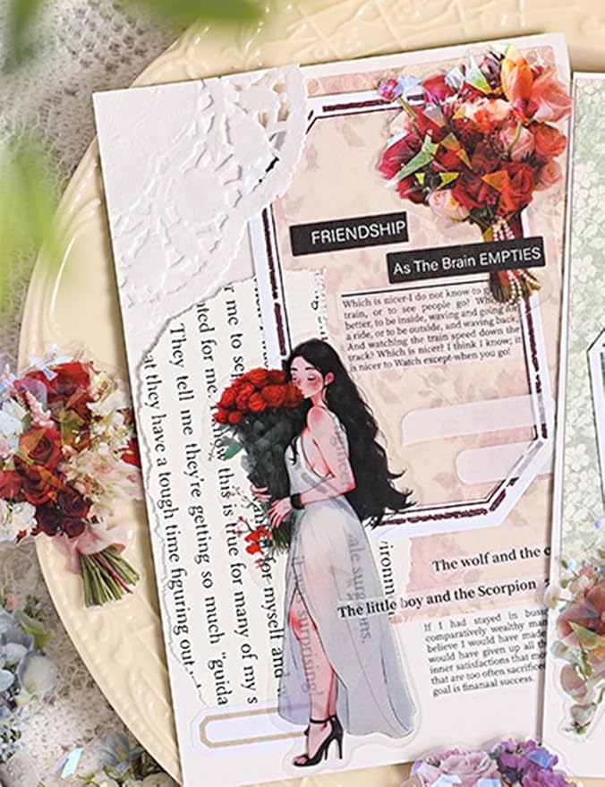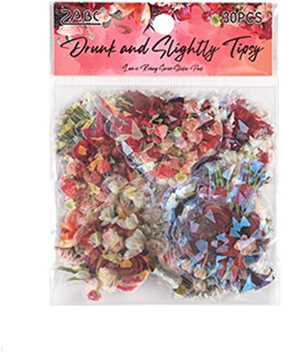 MAFELOE 30 Pieces PET Scrapbook Stickers of Bouquets Theme, Aesthetic Deco Supplies for Junk Bullet Journaling Card Making Daily Planner-Red (D-Y4-AYSQ)
