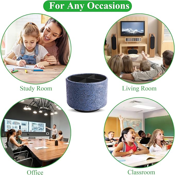 - ✎360° Revolving Design: You can freely rotate the pen holder steadily left and right,unique spinning base design allows easy access to items from any directions.The non-slip pads on the bottom keep it stay in place when rotating.