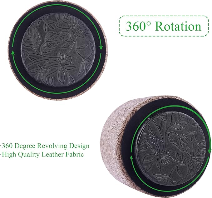 lizimandu Round Leather Art Supply Organizer,Remote Control Holder,360 Degree Spinning,Multi-Functional Pencil Holder,4 Compartments Desktop Stationary Organizer(1-Carved Wood Beige)