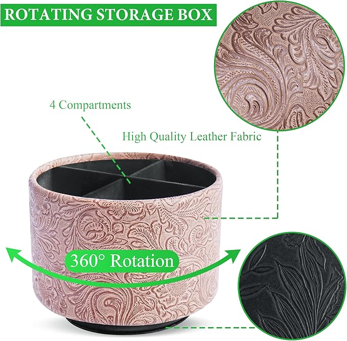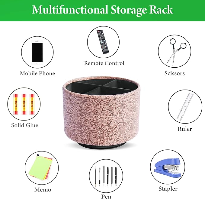 - ✎360° Revolving Design: You can freely rotate the pen holder steadily left and right,unique spinning base design allows easy access to items from any directions.The non-slip pads on the bottom keep it stay in place when rotating.
