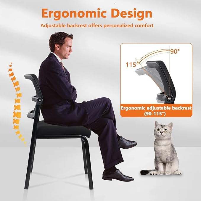 - 【Ergonomic Adjustable Backrest】Customize your seating experience with the adjustable backrest feature of our stackable waiting chair. The backrest can be tilted 90-115° to reduce the strain on your back. Whether you prefer a more upright position during meetings or a relaxed recline while taking a break, this mesh stacking chair adapts to your needs.