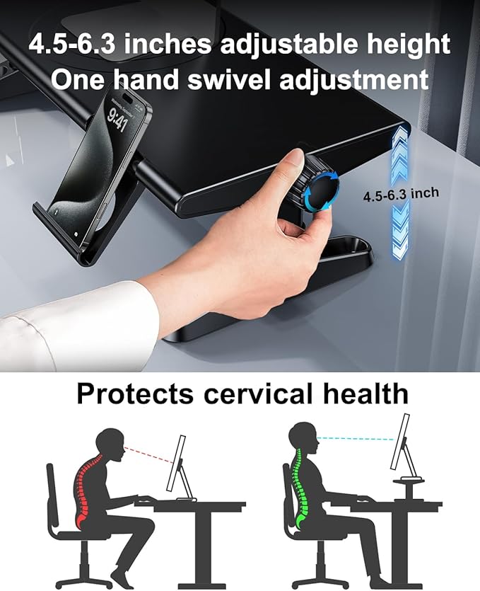 - 【4.5-6.3 Inches Freely Adjustable & Knob Lift】 Unlike other monitor stands that can only be adjusted at a fixed height, our monitor stand allows you to adjust between 4.5-6.3 inches freely. Our knob lift design allows you to adjust it with one hand, and you don't need to move the monitor, which is more trouble-free and more convenient than other monitor risers.