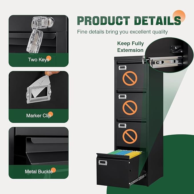 - 〖Document Storage Security〗One key to lock all drawers,each drawer can hang A4/F4/Letter/Legal and other file types;Each drawer can hang at least 150 files,drawer dimensions: 12.86"WX16.18"DX9.44"H.